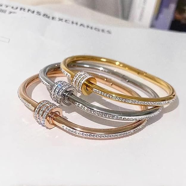 - Premium Quality – Handcrafted with 100% Stainless steel for long lasting, high quality cubic zircon has been perfectly set on the love bangle. 18K real gold plating will ensure a very long lasting brilliant finish that is nickel free, lead free and friendly to sensitive skin. Great choice for anniversary, engagement, party, meeting, dating, wedding, daily wear, etc